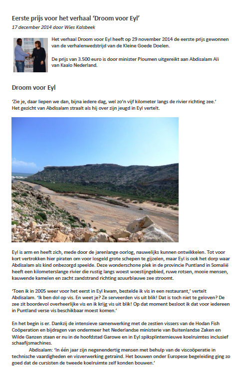 Eerste prijs voor het verhaal ‘Droom voor Eyl’ (2014)